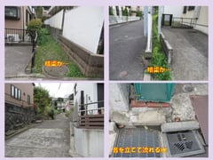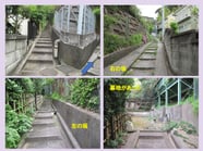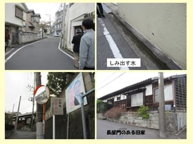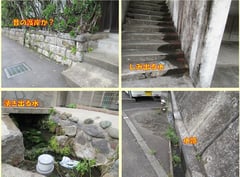 たとえば川も橋もないのに親柱や欄干だけがある、細くて曲がった小径に車止め、コンクリート製の板を並べた道路、銭湯跡、クリーニング店、豆腐店、プール、横浜市の境界杭、小径沿いに並ぶ民家との段差是正のための2段ほどの階段などだ。