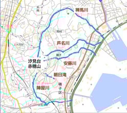 そんな丘陵と谷戸という地形はさまざまな恩恵をもたらしていた。丘陵から流れ出た水が谷戸で川となり周囲の田んぼを潤してきた。流域ではそれを飲み水や染物の布洗いなどで利用してきたし、栄養豊富な水は根岸湾に注ぎ、沿岸部の漁業を支えてきた。