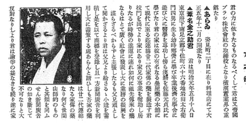 これは大正6年に発行された『横浜社会辞彙』に載った葦名金之助の項目。それによると…